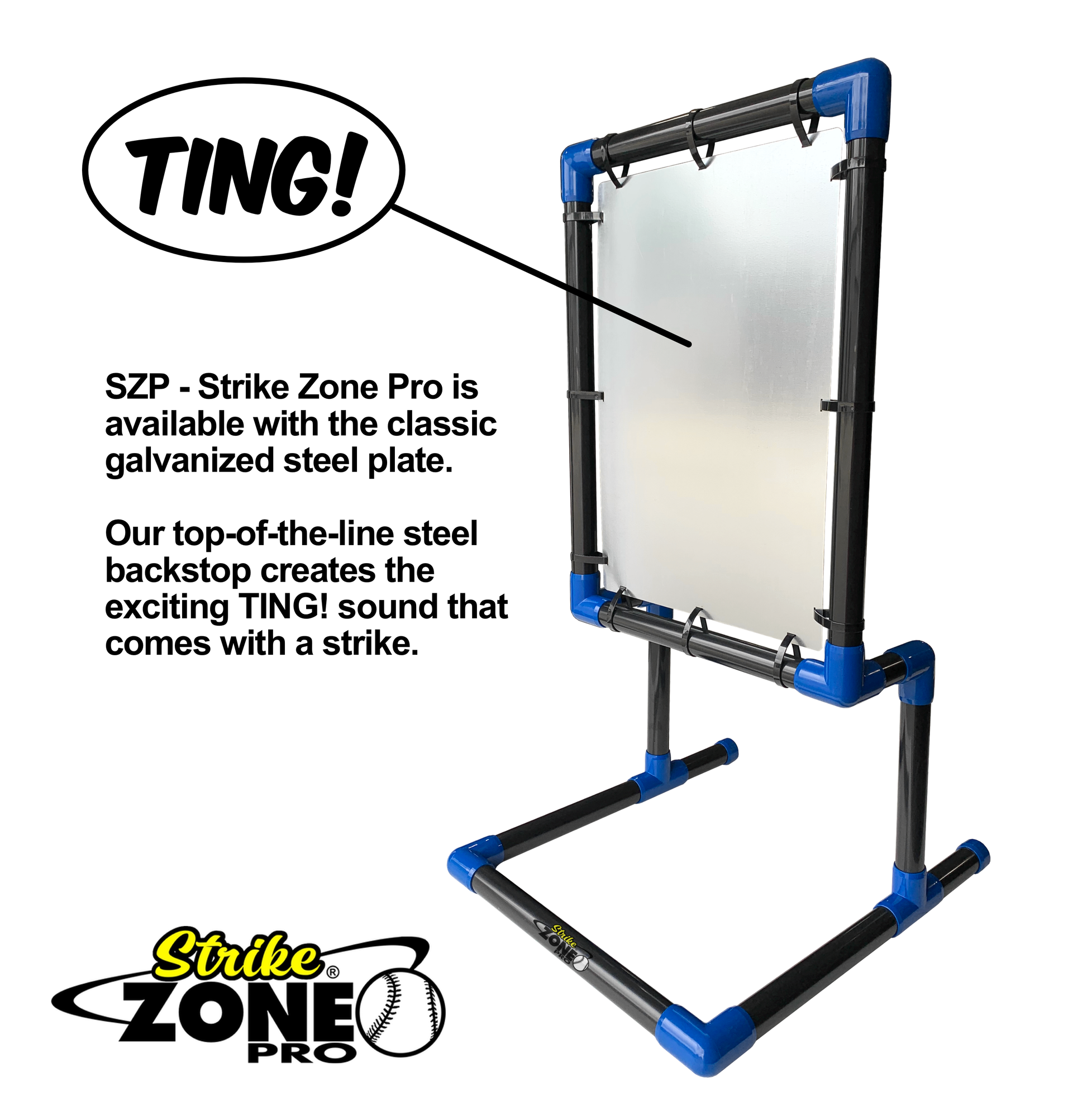 SZP - STEEL Strike Zone Pro ™ - 275 lb break strength straps, Thick-walled PVC, Precision laser cut steel backstop.